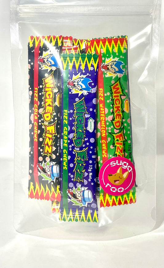 Wicked Fizz Chew Bars 12 Pack Mixed Grape Cola Watermelon