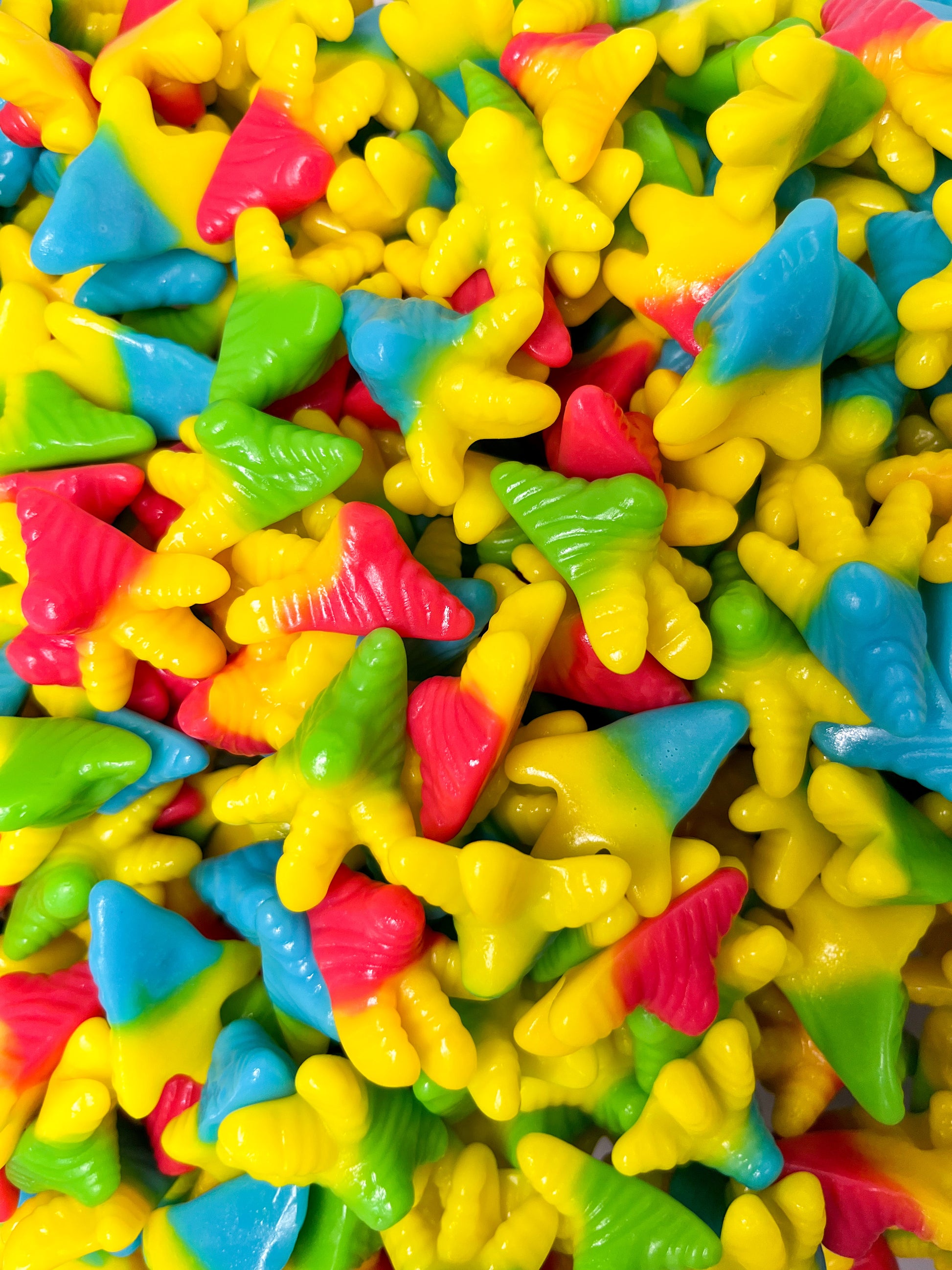 Glucose syrup (corn), sugar, gelatin, acid (330), gelling agent (pectin), flavours, colours (102, 129, 133, 171), vegetable oil, glazing agent (901,903).